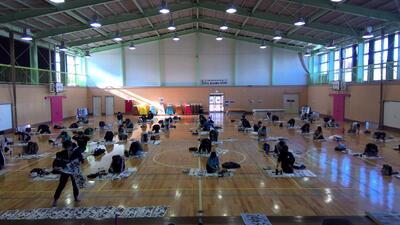 輪ゴムを3本ずつ組んだロケット(1号機)と、6本ずつ組んだロケット(2号機)、そして12本ずつ組んだロケット(3号機)を体育館の一番後ろから飛ばしました!ステージまで届くでしょうか?!