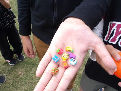 仮装をしている先生とじゃんけんをして勝つとミニ消しゴムがもらえます。
