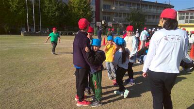初めてやる遊びでしたが、6年生が優しくコツを教えてくれたり、横を走ったりしてくれたおかげで、上手に楽しそうに走っていました。
