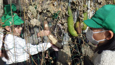 理科の授業で育てていたヘチマが、寒さにより枯れ始めたので…