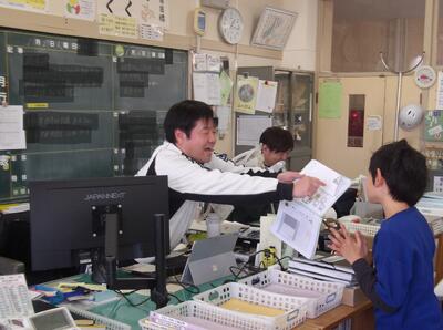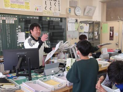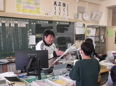 「明るくて元気な声が聞こえてくるぞ。何かなぁ?」と職員室をのぞいてみると、、、