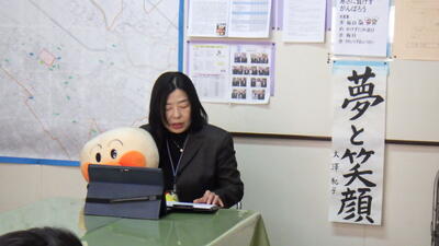 大澤校長先生とアンパンマンが「優しさと勇気」についてお話をしてくださいました。