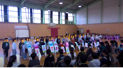 最後は全校で『アンパンマンのマーチ』を合唱。改めて歌詞の素晴らしさを感じるひとときでした。5年生の澄んだ歌声が、体育館いっぱいに広がりました。