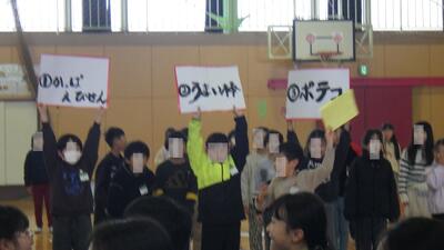 「どっこいしょ!どっこいしょ!」の元気いっぱいの掛け声が体育館中に響きわたり、大きなパワーを届けてくれました。さすが北小の元気リーダー、4年生です。