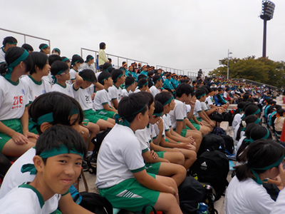 陸上競技場で、市内の6年生が集まり、陸上競技大会が行われました。
