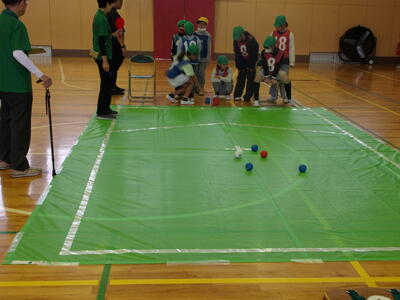 白いボールに近づくように作戦を考え、チームで協力してゲームを行うことができました。