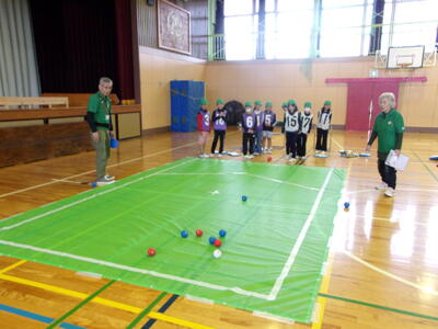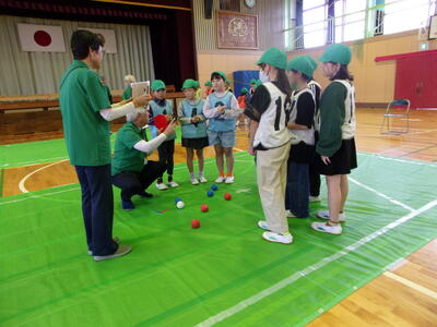鴻巣ボッチャサポータークラブの方々に、ボッチャの歴史やルールについて教えてもらいました。