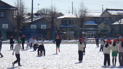 2時間目休みに校庭に残った雪で、元気に遊んでいました!